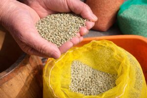 種モミを袋から取り出し、計量して振り分けします。そして本日から10日間、水に浸し発芽の準備をします。